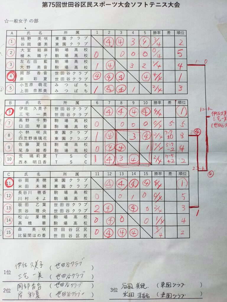 ■一般女子の部(出場ペア:15ペア)