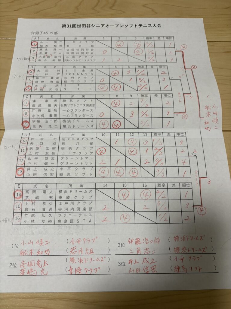 ■男子45の部(申込ペア:16ペア)