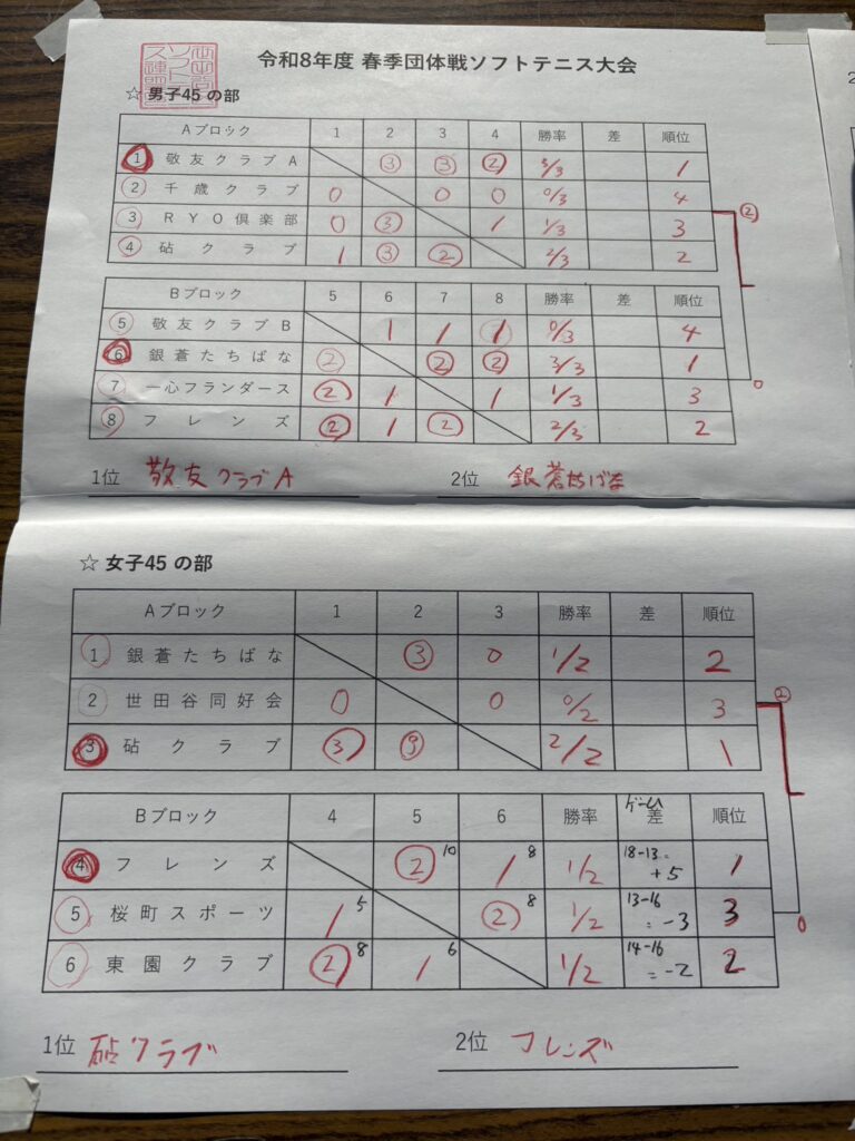 4/12(日)に世田谷区立総合運動場テニスコートにて行われました。